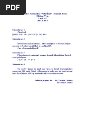 Concurs Matematica Clasa A Iv A