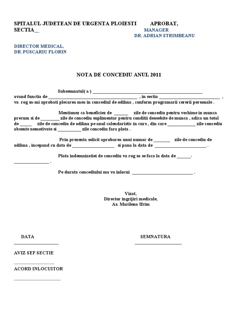 Model Cerere Intrerupere Rezidentiat Pentru Concediu Fara Salar Pdf