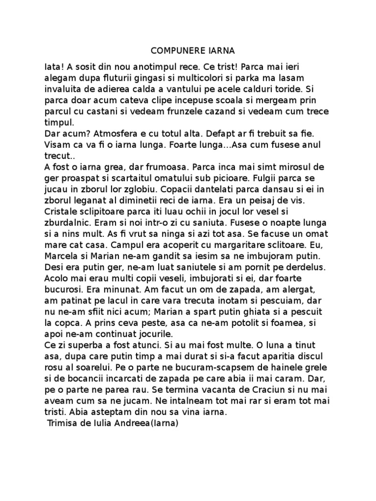 Alcatuieste O Compunere De Cel Mult Două Pagini Si Care Sa Descrii O Iarna Mai Putin Prietenoasa Ps Brainly Ro