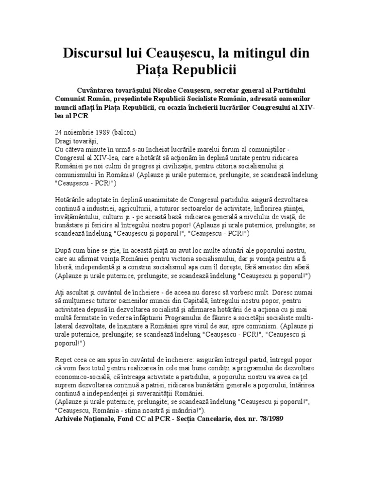 Discursul Lui Ceausescu La Mitingul Din Piaţa Republicii
