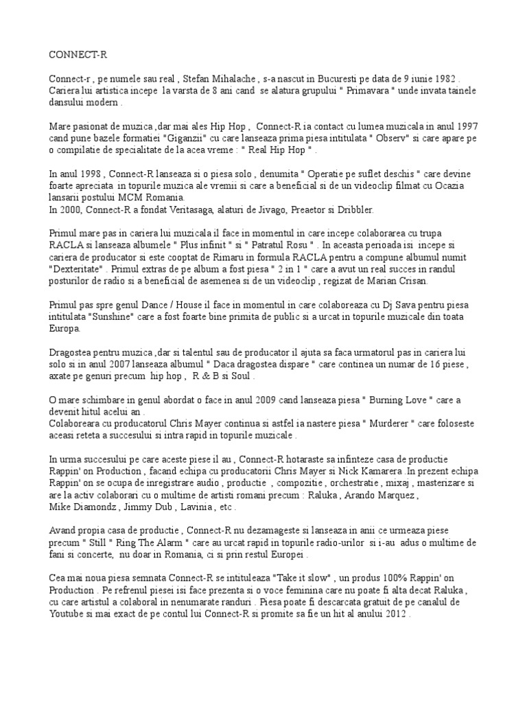 Biografie Connect R Pagina Vedete Clopotel Ro