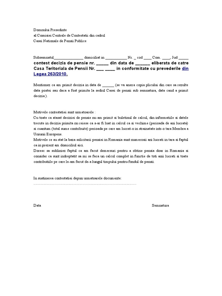Cerere Contestare Decizie De Pensionare Model Scri