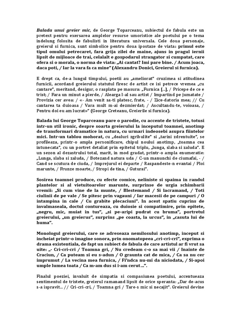 Balada Unui Greier Mic Referat George Toparceanu