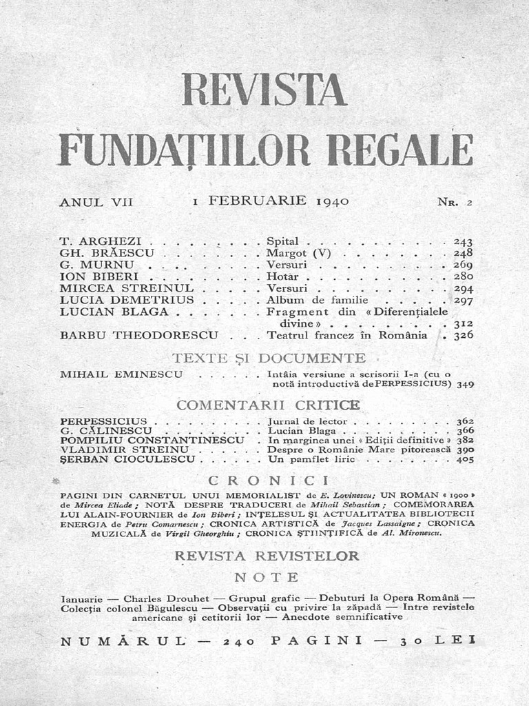 Rev Fundatiilor Regale 1940 02 1 Feb Revista Lunara De Literatura Arta Si Cultura Generala
