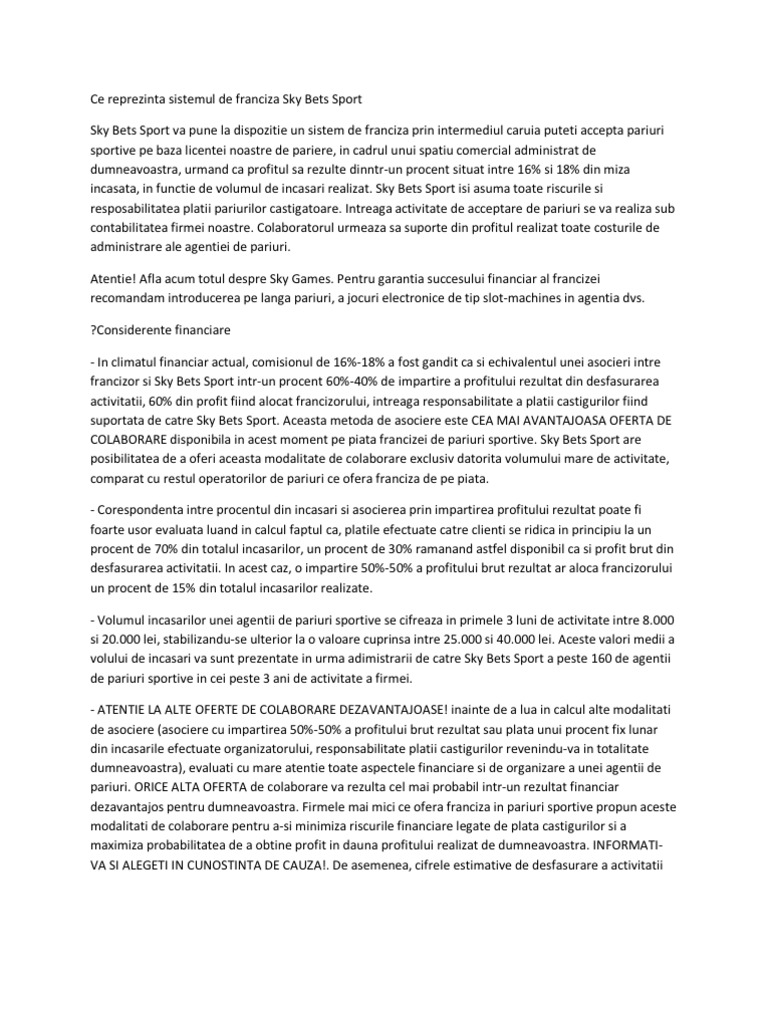 Costurile Obtinerii Francizei In Colaborarea Cu Sky Bets
