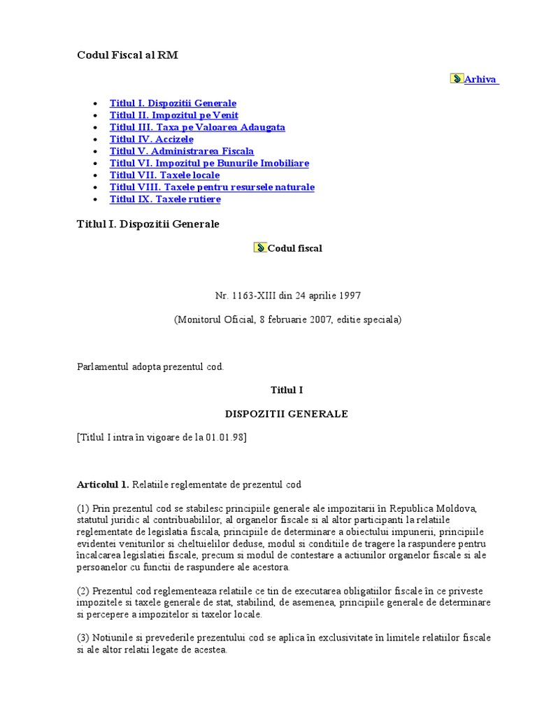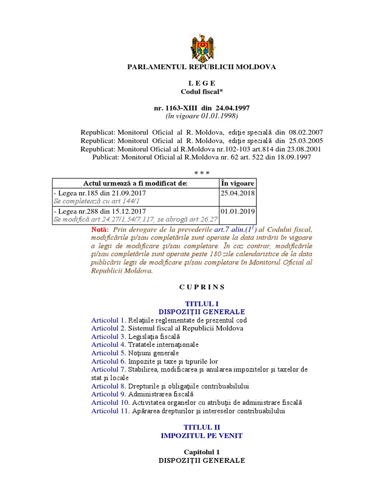 Lege Codul Fiscal Nr 1163 Xiii Din 24 04 97 Agenţia Proprietăţii